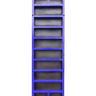 Состоит из сварного стального каркаса с толщиной профиля 2,5 мм и ламинированной фанеры – 18 мм. Стягивается с противоположными элементами опалубки специальными стяжками: полая пвх трубка, стяжной винт, гайки. Соединяется с другими секциями щитов с помощью клиновых замков, формируя единую жесткую конструкцию. Универсальность щитовой опалубки позволяет создавать практически любые необходимые формы будущих стен и перекрытий в максимально короткие сроки.