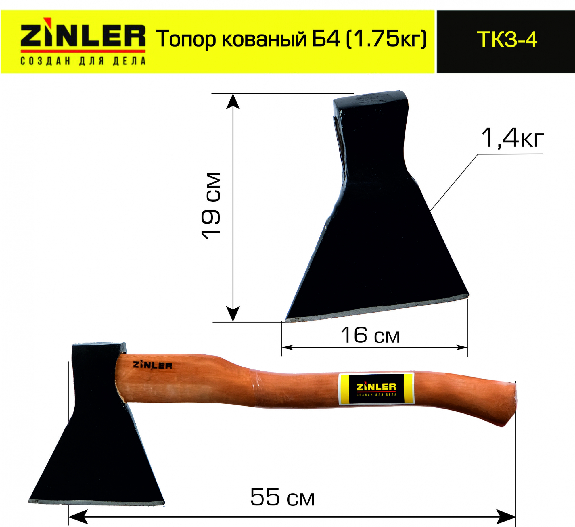 Топор ZINLER кованый 1,4 кг в сборе, Б4 (общий вес 1,75 кг)