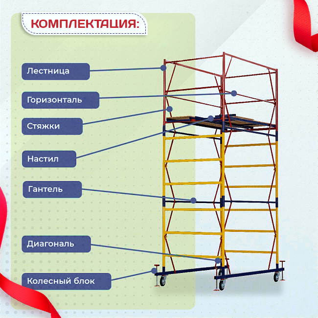 Вышка ВСП-250 шириной 1.2х2.0 метра - универсальная передвижная модель для строительных, ремонтных, монтажных работ как внутри помещения, так и для уличных работ.